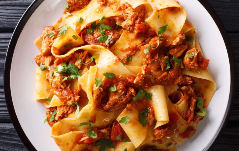 Erste GängeBandnudeln mit SchmorfleischBandnudeln mit Schmorfleisch sind ein köstliches traditionelles italienisches Nudelgericht, das aus hausgemachter Eierbandnudeln und geschmortem Rindfleisch zubereitet wird.Schwierigkeit MittelZubereitung 5 MinutenKochzeit 20 MinutenPortionen für 4 Portionen Senden × Facebook Twitter Email Pinterest Speichern DruckenDie Pappardelle allo Stracotto sind ein köstliches italienisches Hauptgericht mit rustikalem Geschmack, das an Zuhause erinnert. Einfach und schnell zuzubereiten, werden diese Pappardelle mit Stracotto-Sauce einfach mit frischer Eierpasta und geschmortem Fleisch zubereitet. In dieser Version werden sie mit übrig gebliebenem Schweinestracotto mit Zwiebeln zubereitet, aber natürlich können Sie es auch speziell für die Pasta mit Stracotto zubereiten.Ideal, um übrig gebliebenes Stracotto auf besonders schmackhafte Weise zu genießen, sind diese Tagliatelle mit Stracotto-Ragout eines jener Gerichte, die jeden erobern – von Liebhabern traditioneller Rezepte bis hin zu denen, die außergewöhnliche Gerichte bevorzugen… niemand kann den Pappardelle allo Stracotto widerstehen!Und wenn Sie nach weiteren Pappardelle-Rezepten suchen, verpassen Sie nicht die Pappardelle mit Lammragout, Paccheri mit Kaninchenragout und Pappardelle mit Hase! Und jetzt entdecken wir gemeinsam das Rezept für die Pappardelle allo Stracotto!Zutaten für 4 Portionen400 g Pappardellenach Geschmack Schmorbratennach Geschmack Petersilienach Geschmack SalzZutatenliste kopierenIn der App öffnenVerfahrenLade unsere APP mit exklusiven Inhalten und WENIGER WERBUNG! Klicke hier und ERHALTE ES KOSTENLOSUm die Pappardelle allo Stracotto zuzubereiten, kochen Sie zunächst die Pappardelle in reichlich leicht gesalzenem Wasser bis sie noch bissfest (al dente) sind.In der Zwischenzeit erwärmen Sie das Stracotto (traditionell geschmortes Schweinefleisch) unter häufigem Rühren. Falls nötig, zerkleinern Sie das Fleisch in kleinere Stücke. Wenn die Pasta fertig ist, gießen Sie sie ab und geben Sie sie direkt in die Pfanne mit der Sauce.Schwenken Sie alles zusammen, bis die Zutaten perfekt vereint sind. Schmecken Sie mit Salz ab, verfeinern Sie mit etwas gehackter Petersilie und servieren Sie die Pappardelle allo Stracotto! Denkt schließlich daran, unsere App mit exklusiven Inhalten und weniger Werbung herunterzuladen!Varianten und AlternativenAlternativ können Sie die Pappardelle auch mit Brasato al Barolo (im Barolo-Wein geschmortes Rindfleisch) zubereiten. Diese norditalienische Variante ist besonders in der Piemont-Region beliebt.TippsFür noch schmackhaftere Pappardelle allo Stracotto empfehlen wir die Verwendung von selbstgemachter frischer Eiernudeln (hausgemachte Pasta all’Uovo). Diese traditionelle italienische Pasta verleiht dem Gericht eine besondere Note.AufbewahrungÜbrig gebliebene Pappardelle allo Stracotto können in einem luftdichten Behälter im Kühlschrank für einen Tag aufbewahrt werden.Kommentare ★ ★ ★ ★ ★ × 5 / 5 You need to enable JavaScript to vote Antwort abbrechen Einen Kommentar hinterlassen