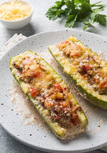 VorspeisenVegetarisch gefüllte ZucchiniVegetarisch gefüllte Zucchini sind eine schmackhafte und würzige Alternative zu den klassischen fleischgefüllten Zucchini und eignen sich sowohl als Vorspeise als auch als Hauptgericht.Schwierigkeit EinfachZubereitung 20 MinutenKochzeit 25 MinutenPortionen für für 4 Personen Senden × Facebook Twitter Email Pinterest Speichern DruckenDie vegetarisch gefüllten Zucchini sind eine köstliche Alternative zu den klassischen fleischgefüllten oder den sommerlichen thunfischgefüllten Zucchini. Keine Sorge, die Füllung ist keineswegs zu mild – dank der Zugabe von getrockneten Tomaten, einer typisch mediterranen Zutat, sind diese gefüllten Zucchini ein wahres Geschmackserlebnis.Für dieses Rezept verwenden wir helle, längliche Zucchini, aber Sie können auch runde Zucchini verwenden, die sich ebenfalls hervorragend für die herzhaftere Version mit Hackfleisch und Wurst eignen. Die Füllung dieser Zucchini ist schnell und einfach zuzubereiten und verwendet Zutaten, die in jeder Küche zu finden sind. Das Rezept lässt sich nach Belieben individuell anpassen. Die Zubereitung im Ofen macht diese gefüllten Zucchini nicht nur leicht und bekömmlich, sondern dank der Gratinierung mit Parmesan und Olivenöl auch besonders schmackhaft.Wenn Sie gefüllte Zucchini mögen, sollten Sie auch die ligurische Variante mit Sardellen probieren, die einen kräftigen, würzigen Geschmack hat. Mit etwas Übung werden Sie schnell herausfinden, wie vielseitig Zucchini in der Küche eingesetzt werden können – ob gegrillt, gebraten, gedämpft oder überbacken. Zucchini sind ein vielseitiges Gemüse, das sich für zahlreiche schnelle und einfache Gerichte eignet.Zutaten für für 4 Personen4 Zucchini hell100 g Mollusca von Brot1 Ei85 g getrocknete Tomaten50 g Frühlingszwiebeln1 Karotte klein100 g Parmesan geriebenq.b. Olivenöl (nativ)q.b. Salzq.b. Schwarzer PfefferZutatenliste kopierenIn der App öffnenVerfahrenLade unsere APP mit exklusiven Inhalten und WENIGER WERBUNG! Klicke hier und ERHALTE ES KOSTENLOSUm die vegetarischen gefüllten Zucchini zuzubereiten, waschen und trocknen Sie zunächst die Zucchini. Schneiden Sie die beiden Enden ab und halbieren Sie sie der Länge nach. Höhlen Sie dann mit einem Löffel das Fruchtfleisch aus, bis Sie eine Mulde für die Füllung erhalten. Würzen Sie jedes Zucchini-Schiffchen mit Salz und Pfeffer.Hacken Sie das Zucchini-Fruchtfleisch klein und bereiten Sie eine Soffritto (italienische Basis für Gemüsegerichte) aus fein gehackter Frühlingszwiebel und Karotte zu. Fügen Sie das gehackte Zucchini-Fruchtfleisch hinzu und lassen Sie es 5 Minuten garen. Nach dem Garen salzen und abkühlen lassen.Zerkleinern Sie die Brotkrume mit dem Mixer und geben Sie sie in eine Schüssel. Fügen Sie das Ei, den Parmesan (etwa 70-80 g), das gedünstete Zucchini-Fruchtfleisch und die klein geschnittenen getrockneten Tomaten hinzu. Nach Belieben salzen und alles gut vermischen.Füllen Sie die Zucchini-Schiffchen mit der Mischung und legen Sie sie auf ein mit Backpapier ausgelegtes Backblech. Bestreuen Sie die Oberfläche mit dem restlichen Parmesan und beträufeln Sie sie für die Gratinierung mit etwas nativem Olivenöl extra. Backen Sie die Zucchini im vorgeheizten Backofen bei 200 Grad (Ober-/Unterhitze) etwa 25 Minuten. Ihre vegetarischen gefüllten Zucchini sind nun servierfertig. Denkt schließlich daran, unsere App mit exklusiven Inhalten und weniger Werbung herunterzuladen!Varianten und AlternativenWenn Sie den Geschmack der Füllung frischer gestalten möchten, aromatisieren Sie sie mit Zitronenschale und einigen Thymianblättchen. Für eine noch köstlichere und käsigere Version können Sie der Füllung gewürfelte geräucherte Scamorza (italienischer Räucherkäse) oder süße Provola (milder italienischer Käse) hinzufügen.TippsWir empfehlen Ihnen, die Zucchini-Schiffchen vor der Zubereitung der Füllung zu salzen, damit die Zucchini während der verschiedenen Zubereitungsschritte einen Teil ihres Vegetationswassers abgeben können. Wählen Sie für dieses Rezept helle Zucchini: Sie sind süßer und zarter als die dunkleren Sorten.AufbewahrungDie gefüllten Zucchini können im Kühlschrank in einem luftdicht verschlossenen Behälter 2-3 Tage aufbewahrt werden. Übrig gebliebene Zucchini können Sie auch einfrieren. Legen Sie sie dazu mit ausreichend Abstand zueinander auf ein mit Backpapier ausgelegtes Backblech. So sind sie bis zu 3 Monate haltbar.Kommentare ★ ★ ★ ★ ★ × 4 / 5 You need to enable JavaScript to vote Antwort abbrechen Einen Kommentar hinterlassen